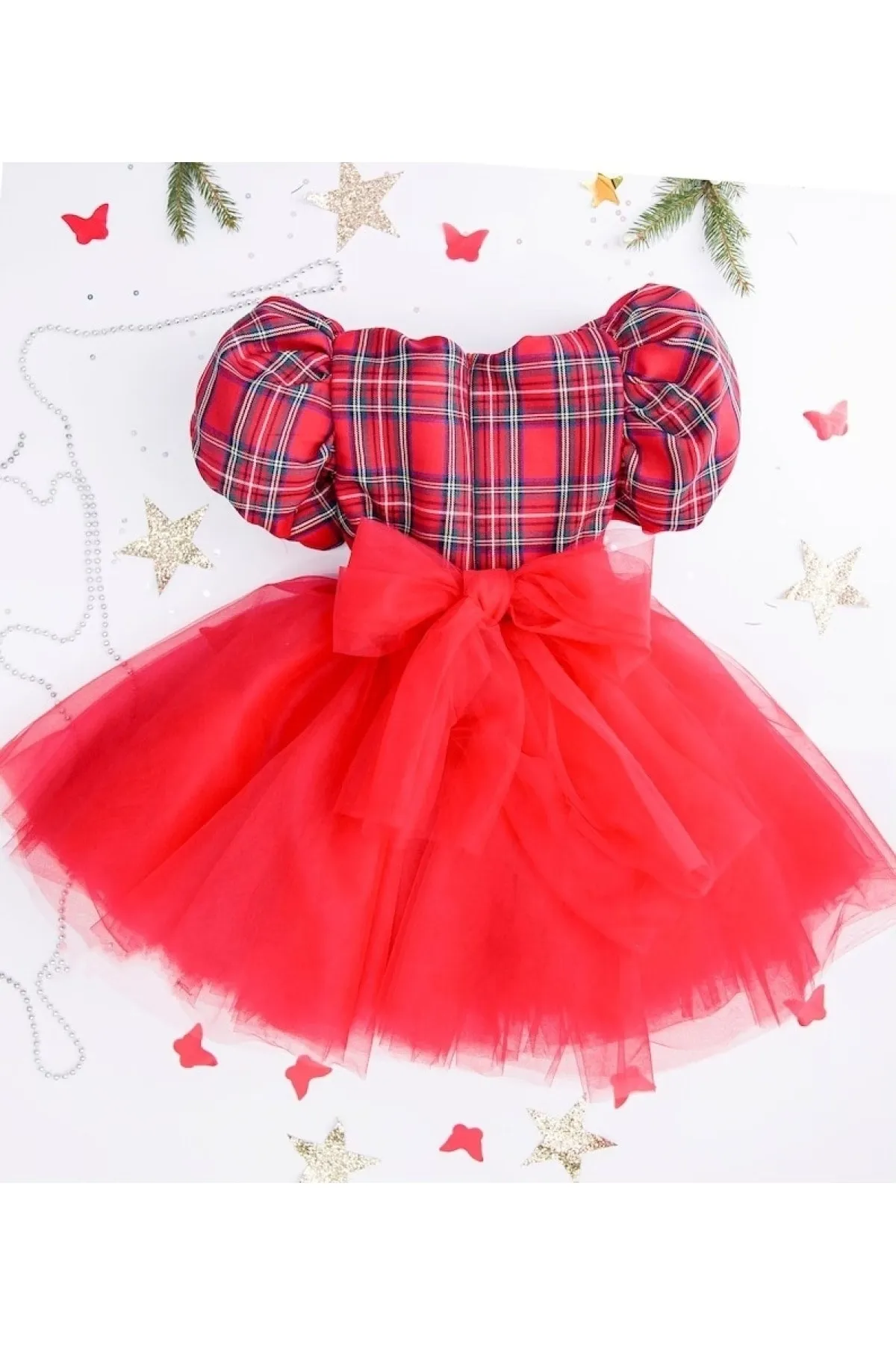 Kırmızı Ekose Tütü Kız Çocuk Elbise