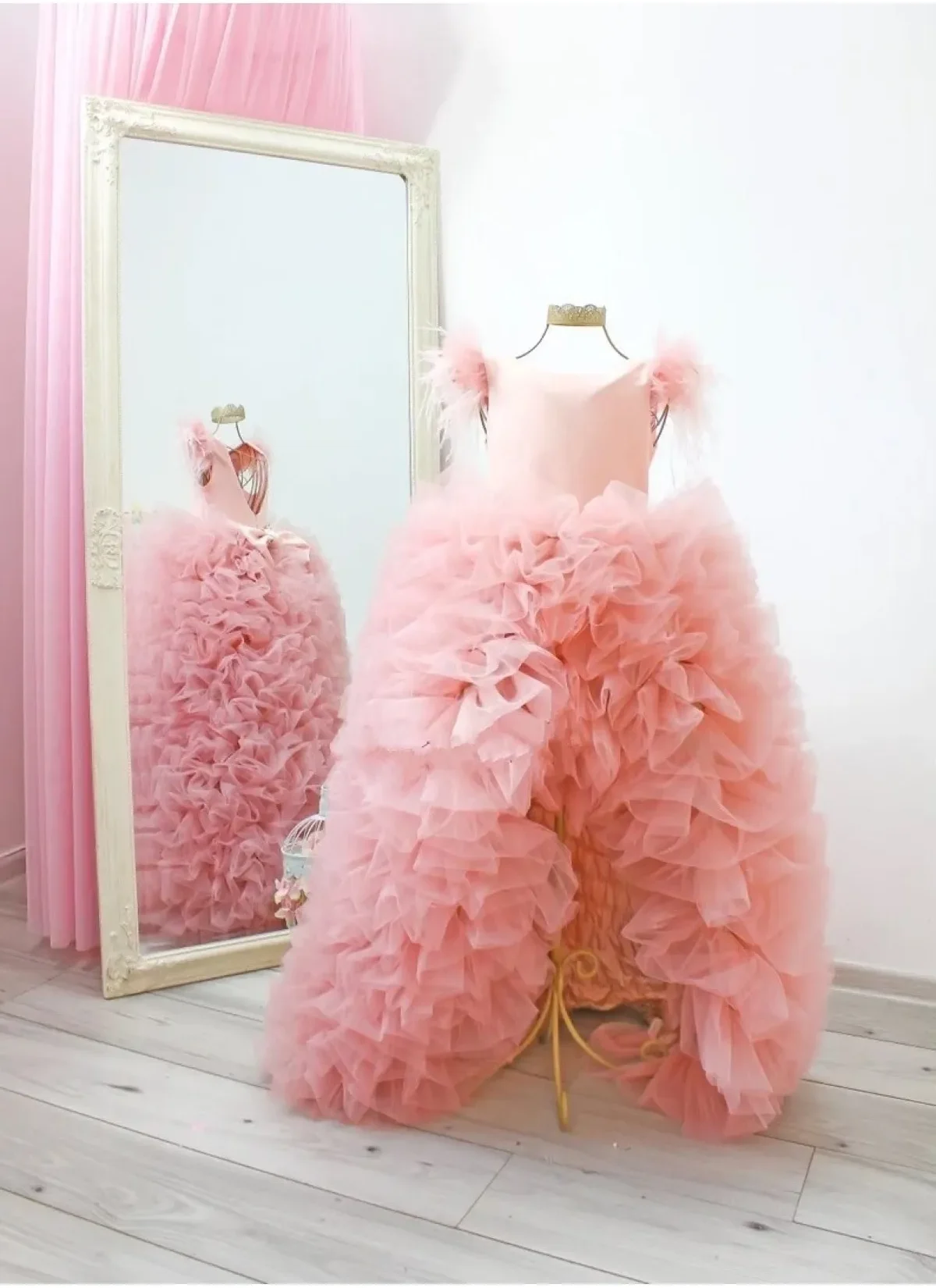 Kız Çocuk Somon Rengi Doğum Günü Parti Mezuniyet Elbisesi