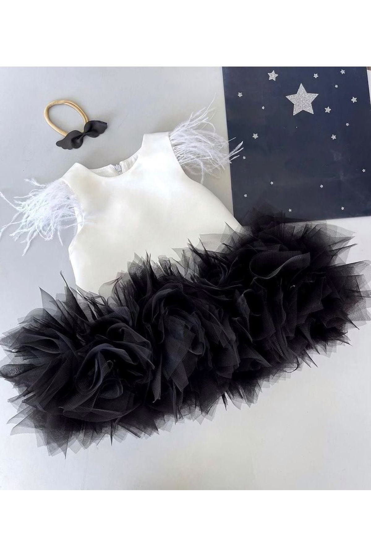 Kız Çocuk Bebek Beyaz Siyah Doğum Günü Parti Elbisesi