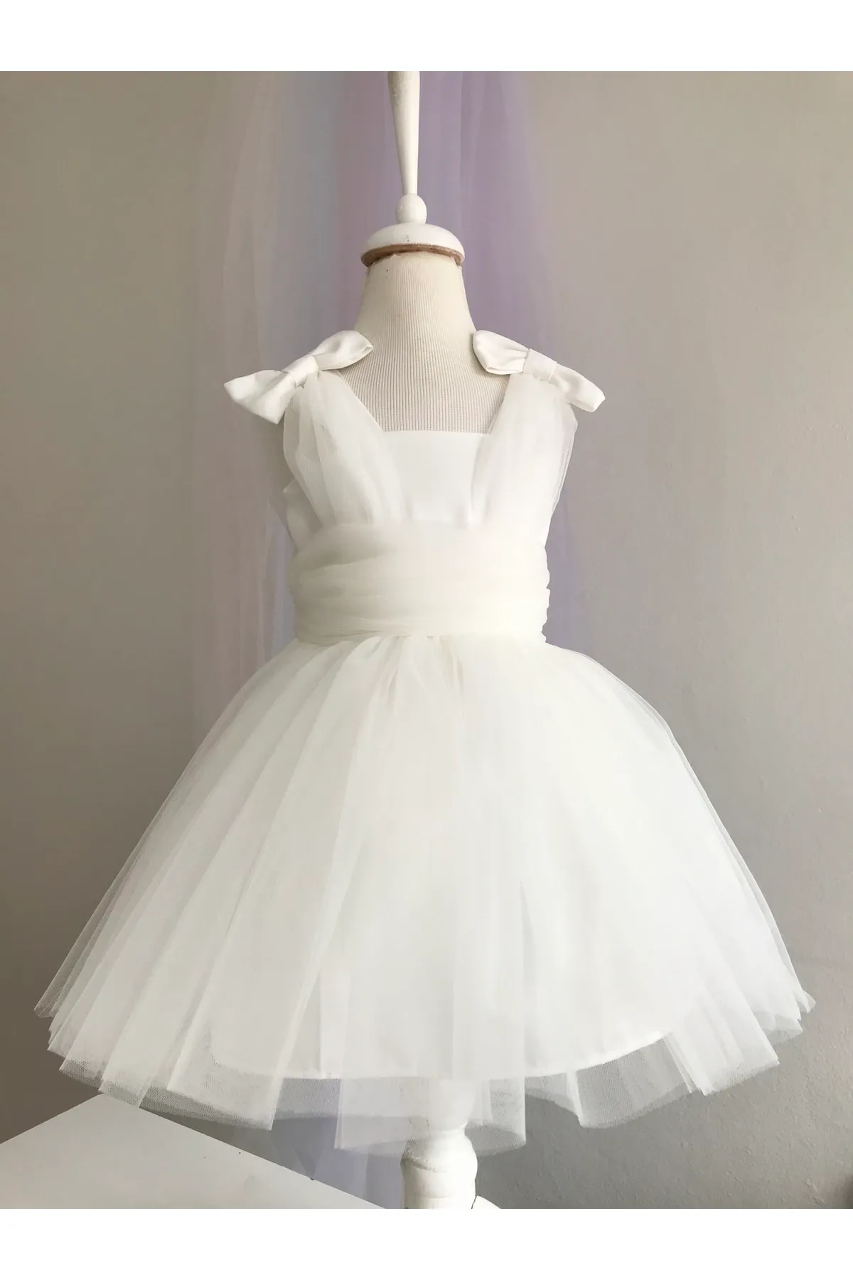 Kız Çocuk Beyaz Fiyonklu Elbise