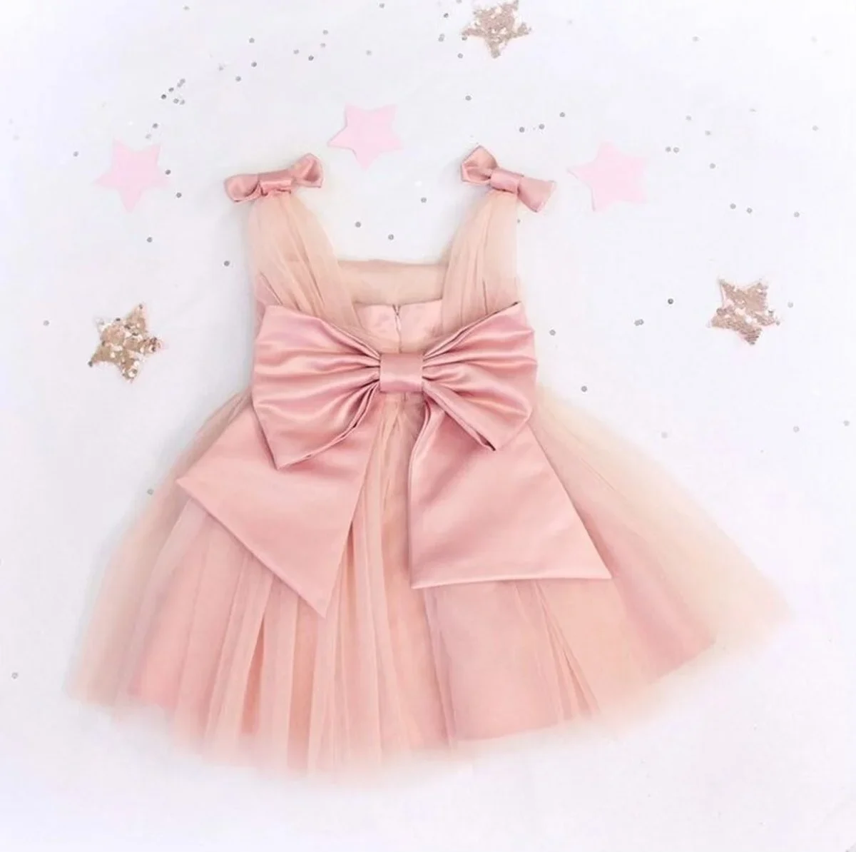 Kız Çocuk Pudra renk parti party doğum günü elbisesi