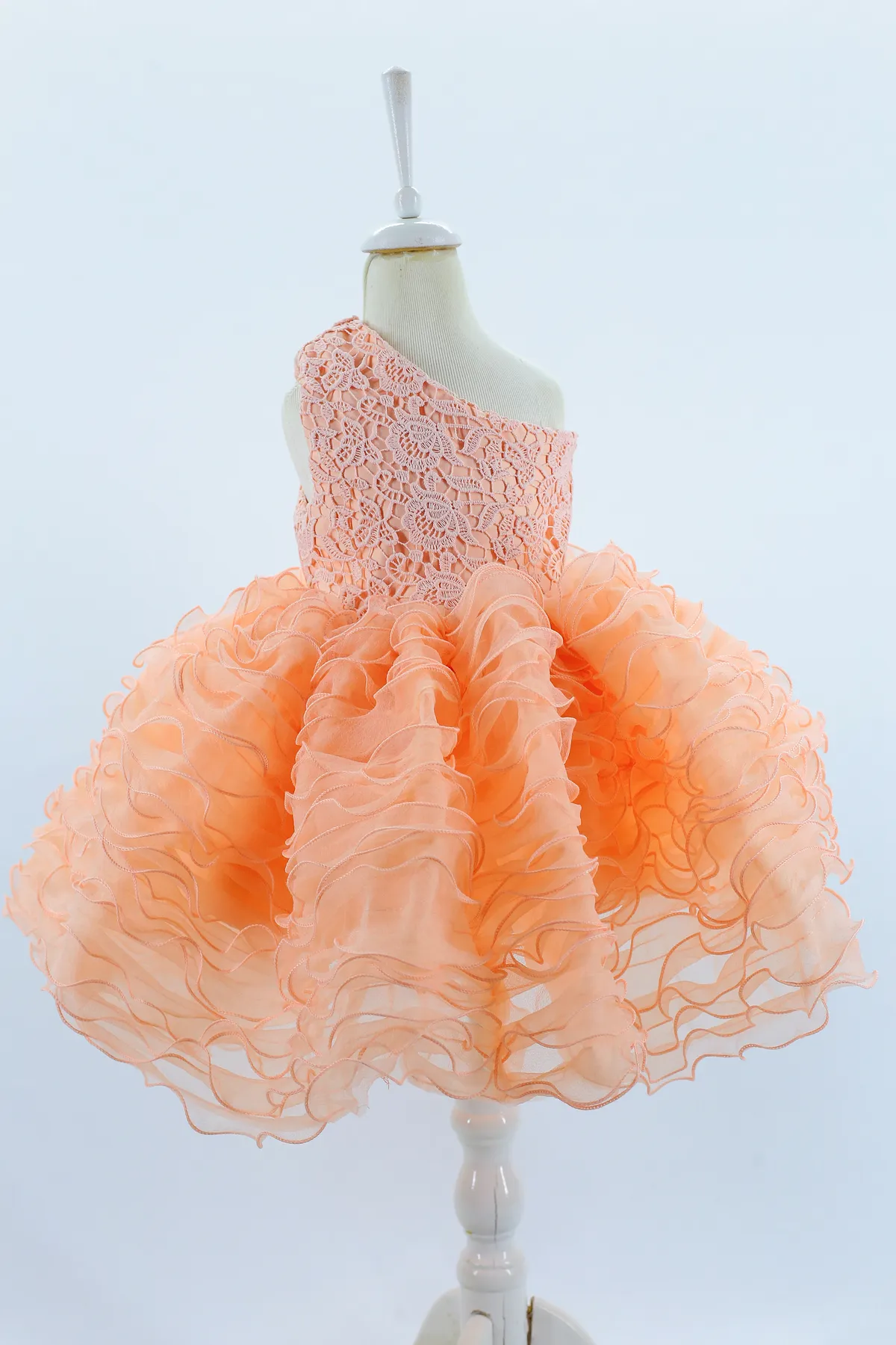 Kız Çocuk Somon Rengi Doğum Günü Parti Mezuniyet Elbisesi