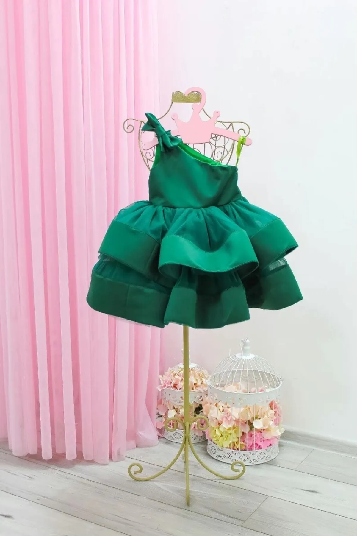 Yeşil Tek Omuz Kız Çocuk Elbise